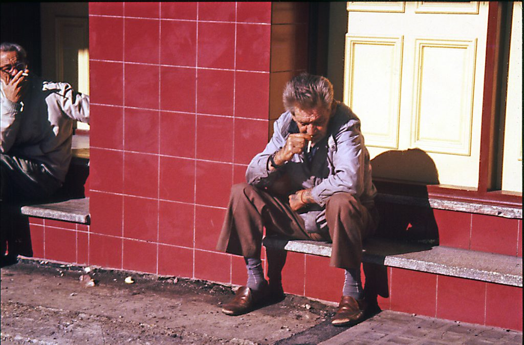Walking around Darlinghurst on a Sunday morning with a 35mm camera slung around my neck, I exited a side street onto Oxford Street and came across two gentlemen smokers passing the time of day. I was startled by their similar appearance and mannerisms.